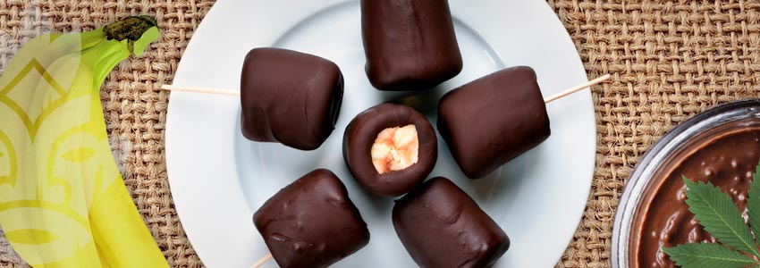 3. Remove the saucepan from heat and stir in the bananas. Ensure they are adequately coated with the canna-chocolate sauce.